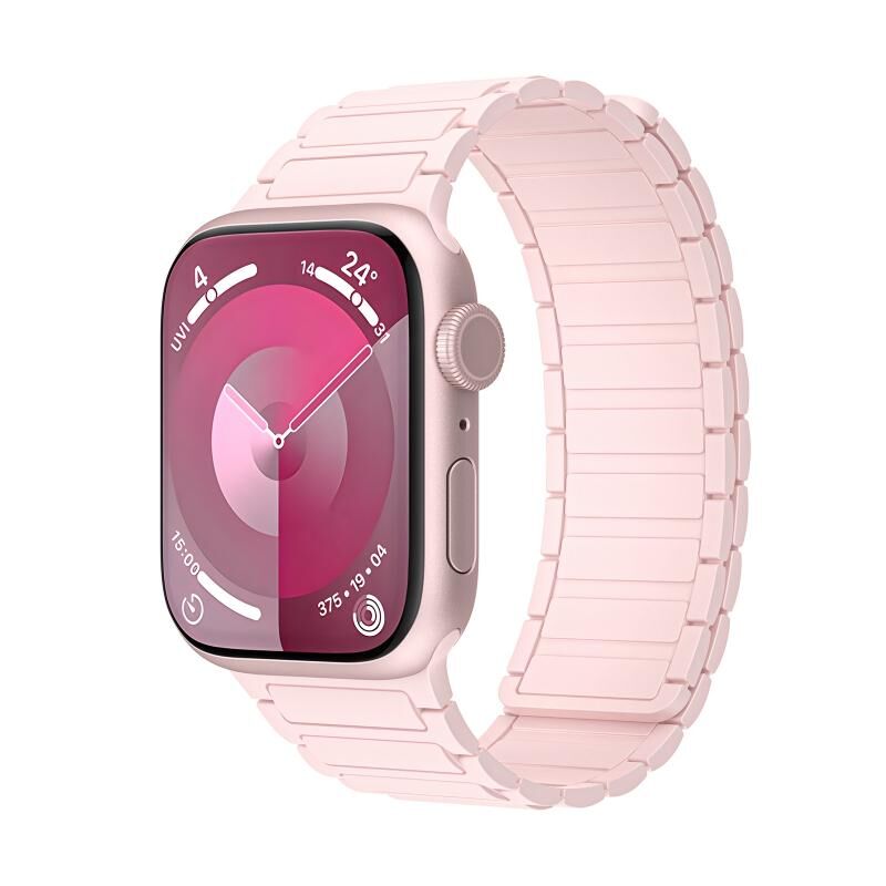 Για Apple Watch Series 9 41mm Μαγνητικό Λουρί Σιλικόνης (Ροζ)