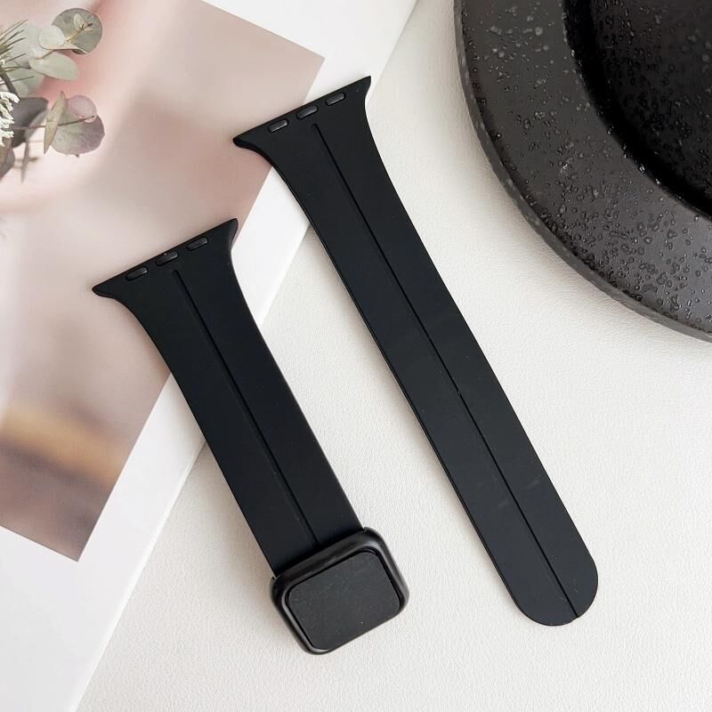 Για Apple Watch Series 9 41mm Μαγνητικό Λουρί Σιλικόνης με Αγκράφα Τετράγωνου Σχήματος (Μαύρο)