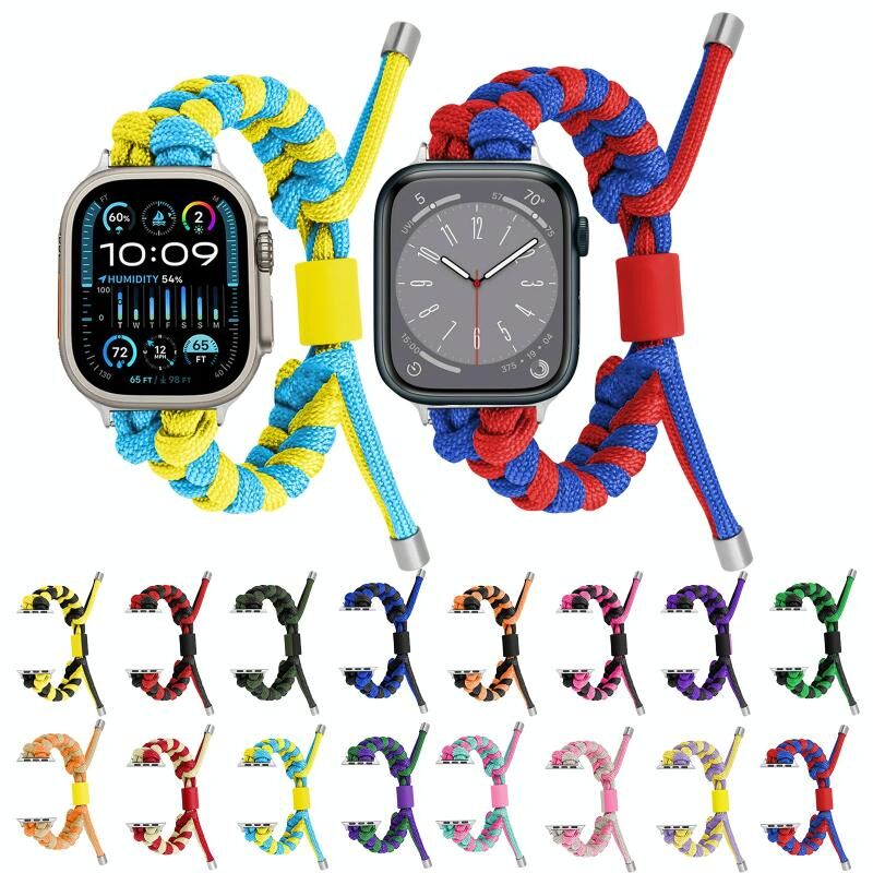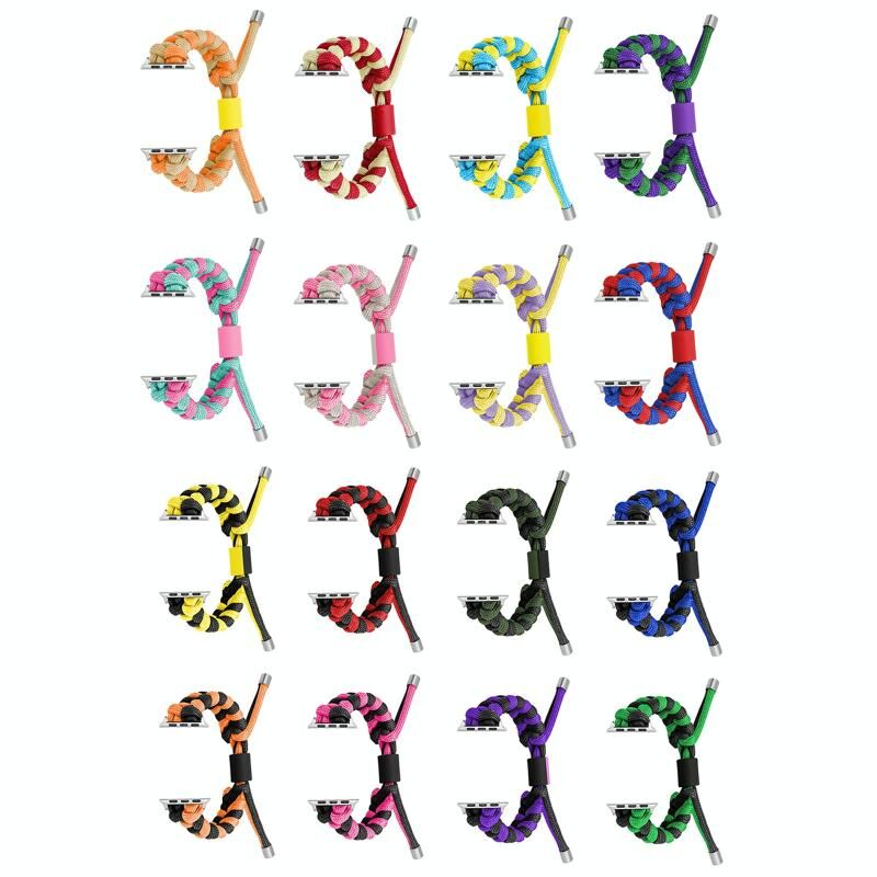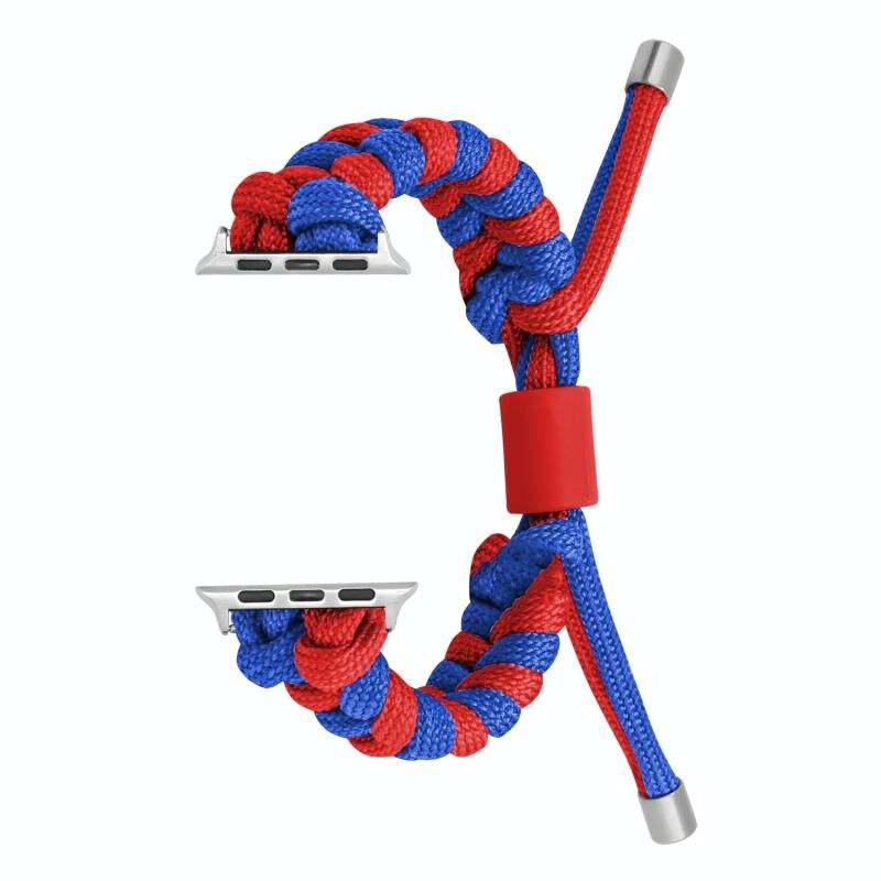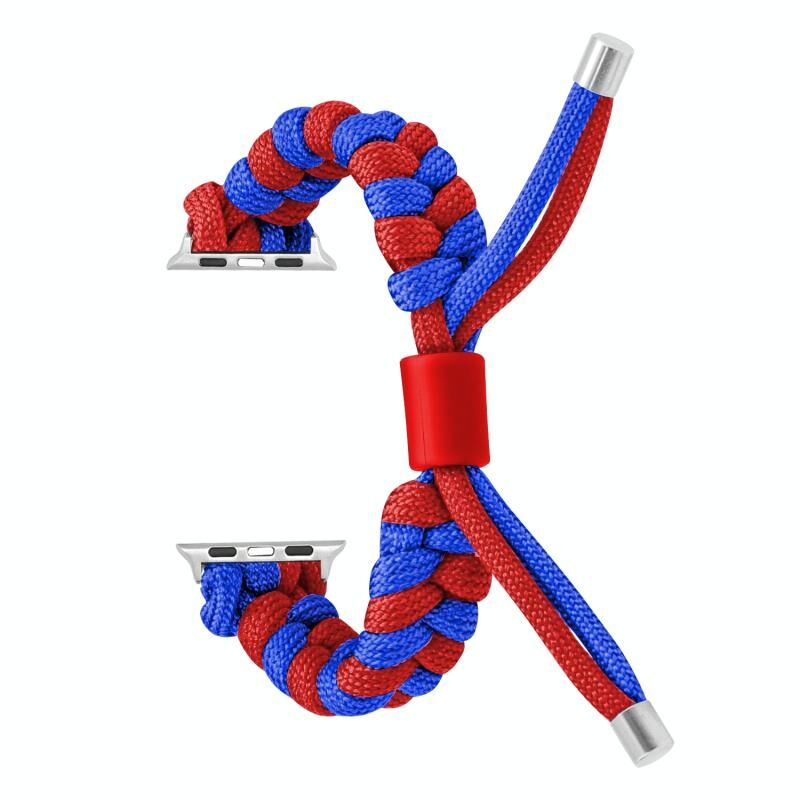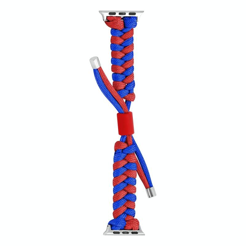 Για Apple Watch Series 9 41mm Λουρί Παρακορδόνι με πλεξούδα ουράς ψαριού και σιλικόνες (Μπλε Κόκκινο)