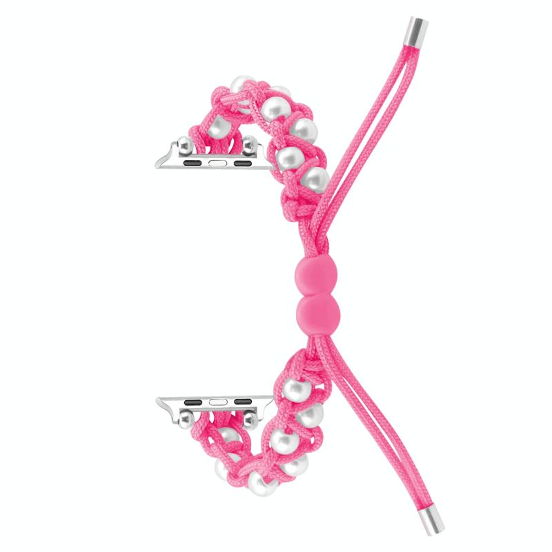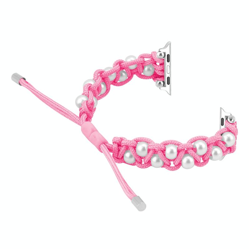 Για Apple Watch Series 9 41mm Λουρί Παρακολούθησης με κορδόνι Paracord, χάντρες Gypsophila και πλεκτή σχεδίαση με κορδόνι (ρόζ)