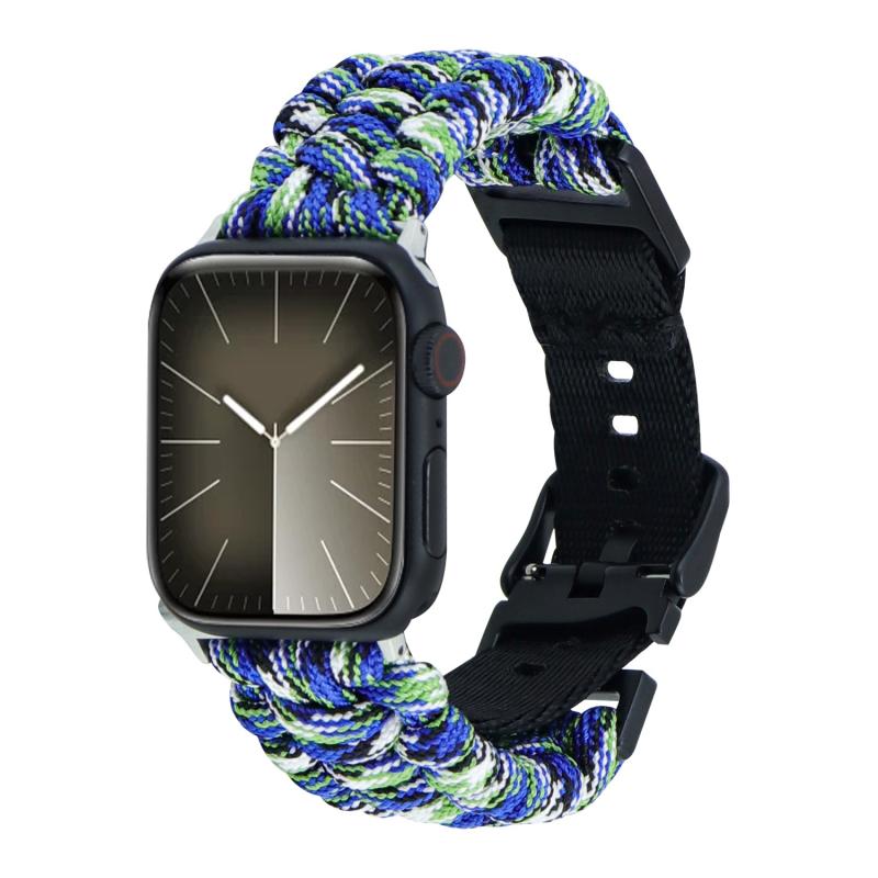 Για Apple Watch Series 9 41mm, Απλή πλεκτή λουρί ρολογιού από paracord με αγκράφα (Μαύρο)