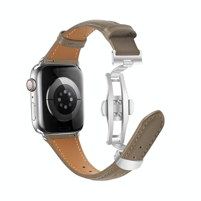 Για Apple Watch Series 9 41mm Λουρί ρολογιού από απλό δέρμα με αγκράφα πεταλούδας (Σκούρο καφέ+Ασημί)