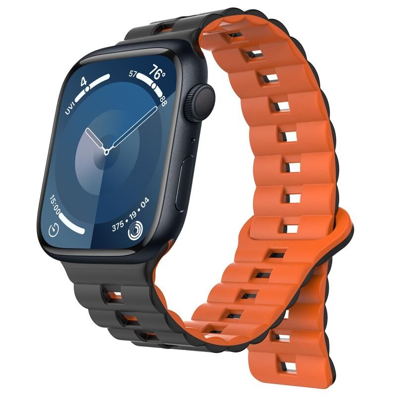 Για Apple Watch Series 9 41mm Λουρί Σιλικόνης με Μαγνητικό Κούμπωμα Αντίστροφης Πόρπης Δύο Χρωμάτων (Μαύρο+Πορτοκαλί)