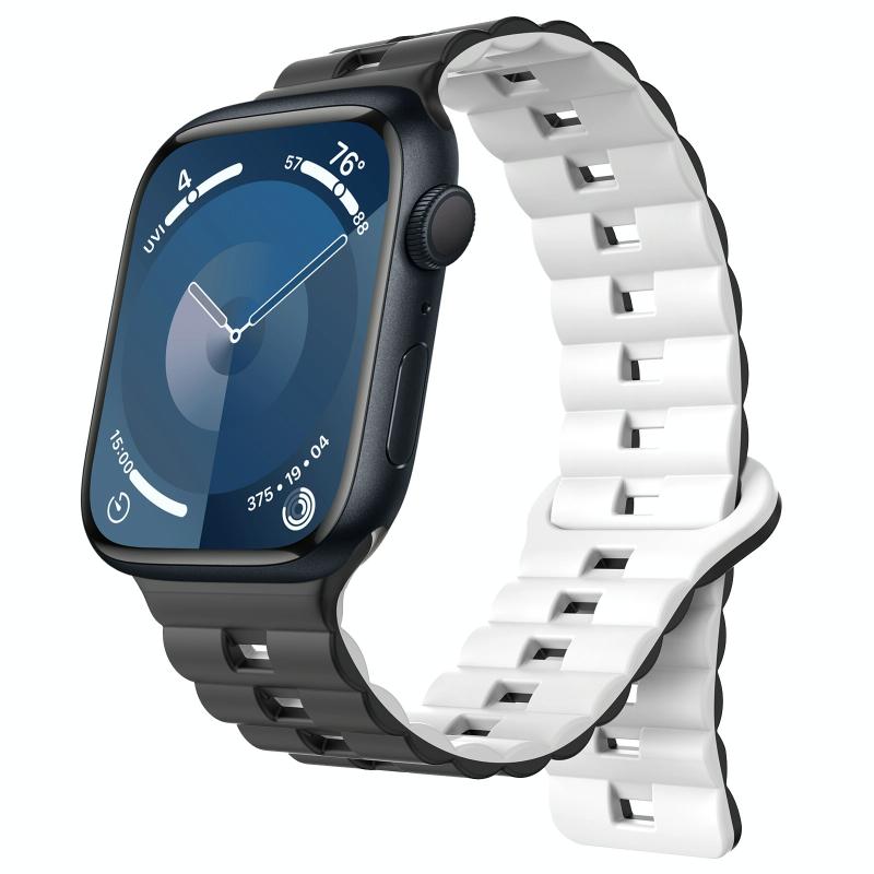 Για Apple Watch Series 9 41mm Λουρί Σιλικόνης με Μαγνητικό Κούμπωμα Αντίστροφης Πόρπης Δύο Χρωμάτων (Μαύρο + Λευκό)