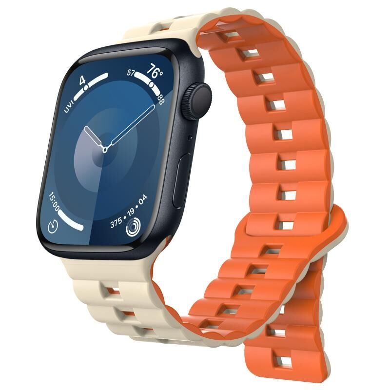 Για Apple Watch Series 9 41mm Λουρί Σιλικόνης με Μαγνητικό Κούμπωμα Αντίστροφης Πόρπης Δύο Χρωμάτων (Γκρι+Πορτοκαλί)
