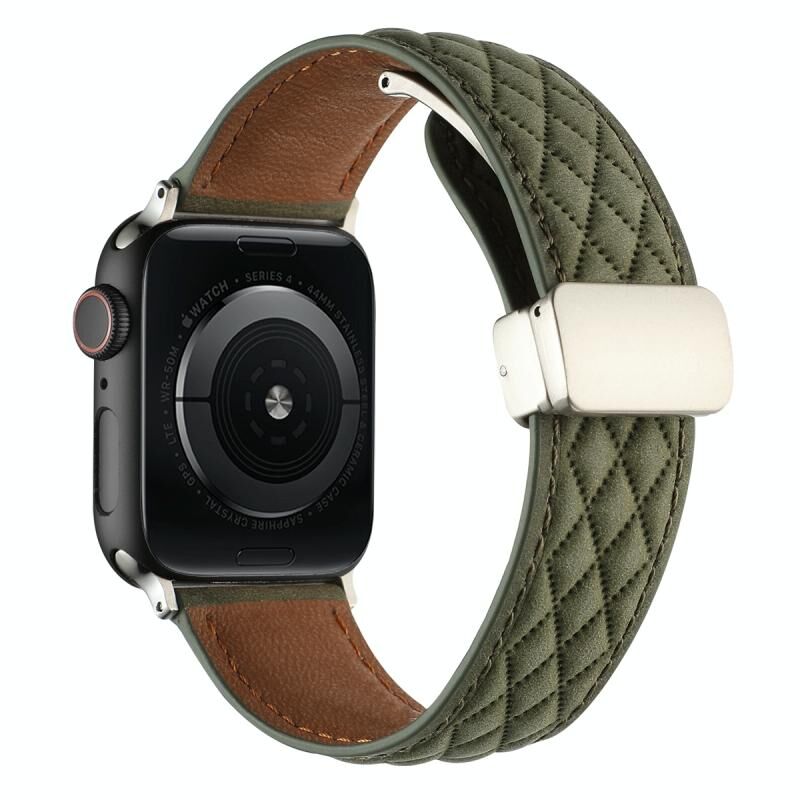 Για Apple Watch Series 9 41mm Λουρί Ρολογιού από Δέρμα με Μαγνητική Αγκράφα Δίπλωσης σε Σχήμα Ρόμβου (Χακί πράσινο)