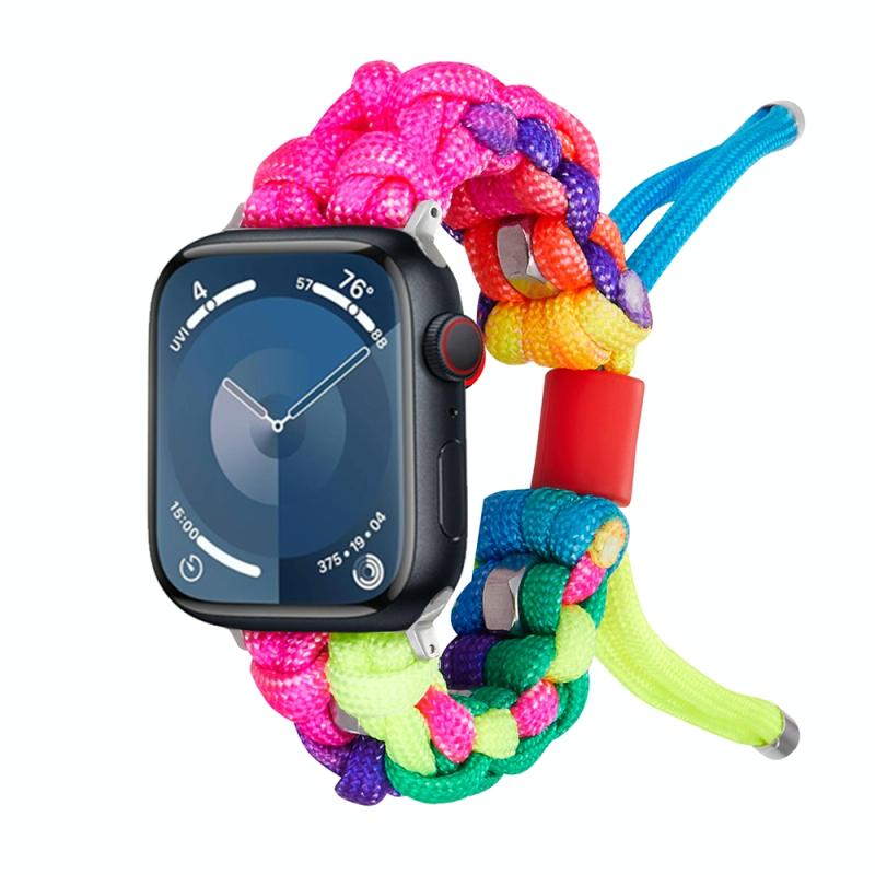 For Apple Watch Series 9 41mm Screw Nut Dual-Color Braided Paracord Watch Band(Rainbow)