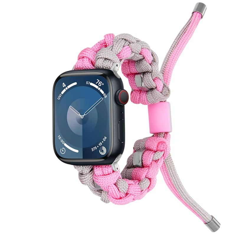 For Apple Watch Series 9 41mm Screw Nut Dual-Color Braided Paracord Watch Band(Silver Pink)
