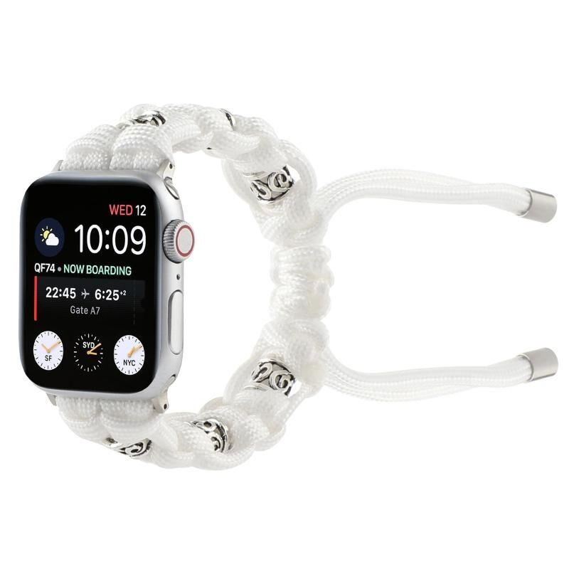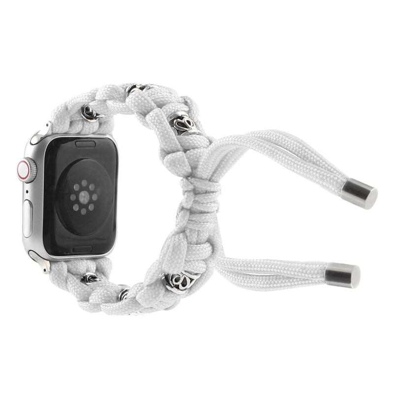 For Apple Watch Series 9 41mm Silk Silver Beads Braided Watch Band(White)