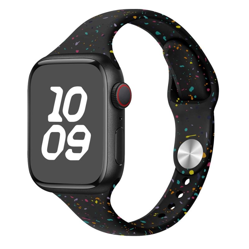 Για Apple Watch Series 9 41mm Λεπτό Στυλ Πολύχρωμες Τελείες Λουράκι Σιλικόνης (Ροζ)