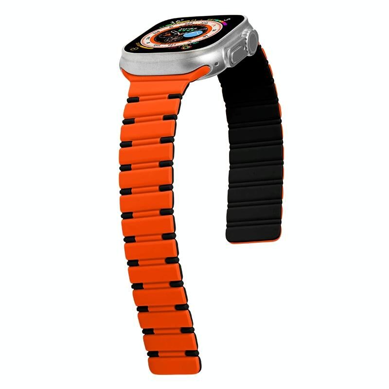 Για Apple Watch Series 9 41mm Διχρωματικό Μαγνητικό Λουράκι Σιλικόνης (Γαλάζια Ομίχλη Πορτοκαλί)