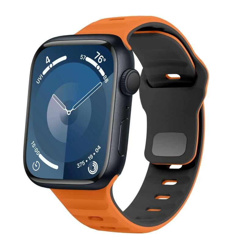 Για Apple Watch Series 9 41mm Λουρί Σιλικόνης με Αγκράφα Αντίστροφης Κλειδαριάς Υφής Κύματος (Πορτοκαλί Μαύρο)
