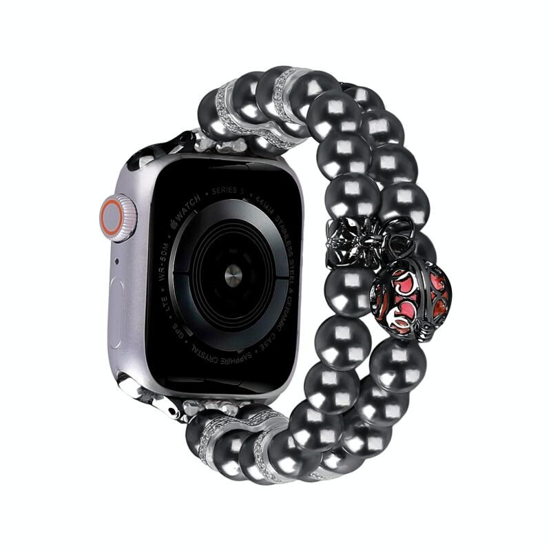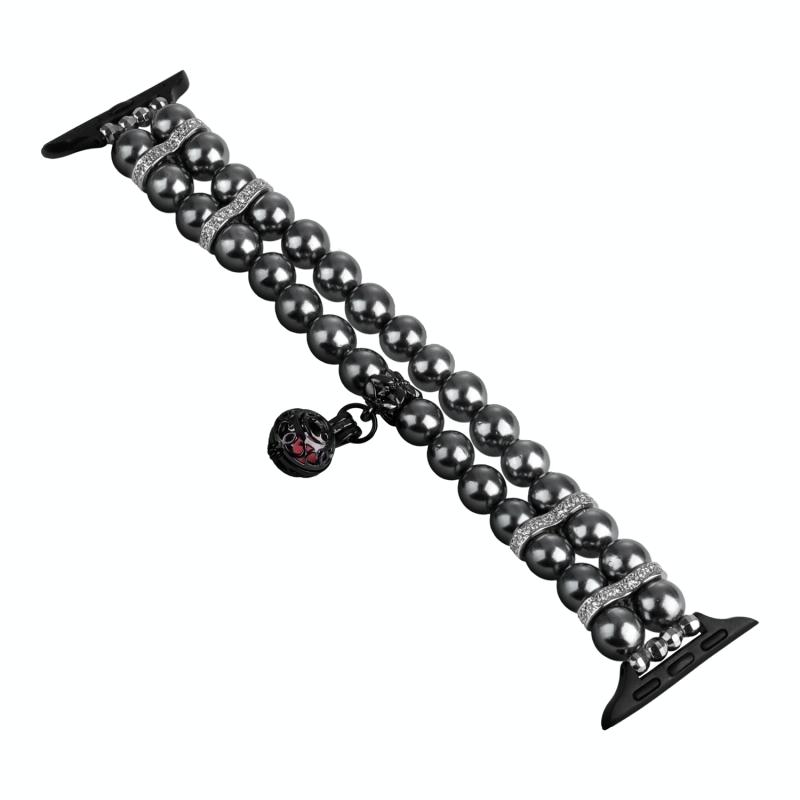 For Apple Watch Series 9 45mm Beaded Dual Row Pearl Bracelet Watch Band(Black)