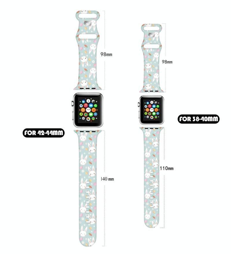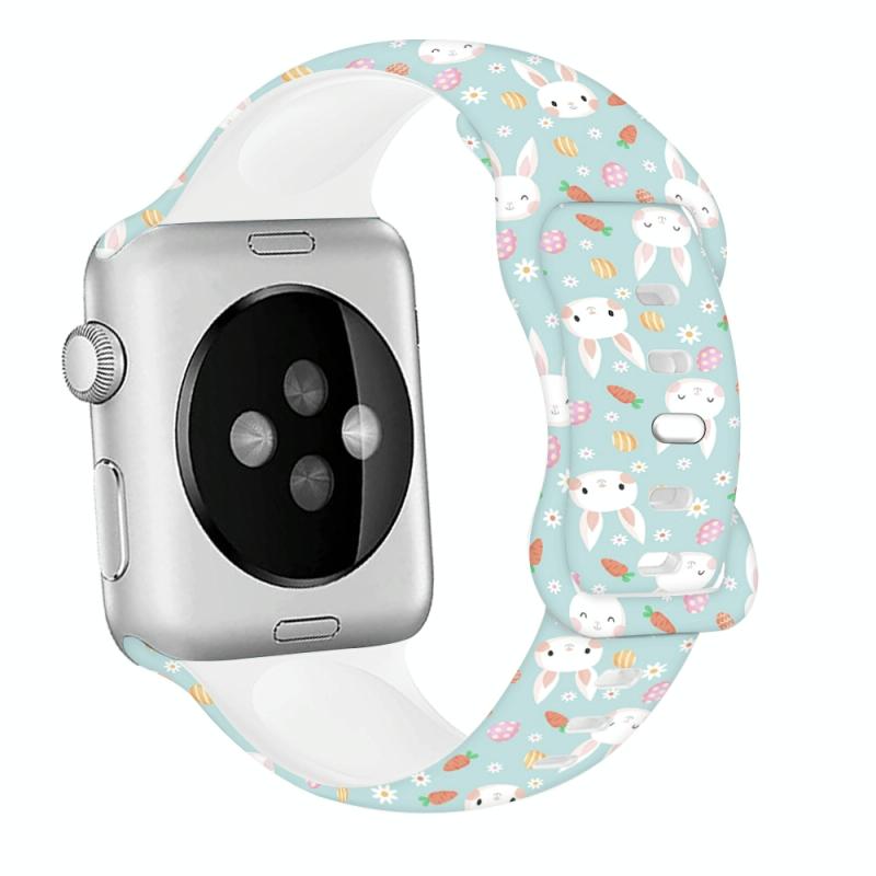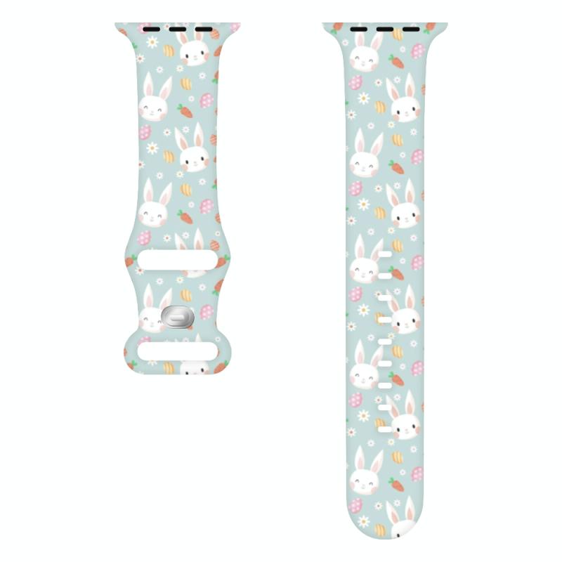 Για Apple Watch Series 9 45mm Λουρί Σιλικόνης με Αγκράφα Πεταλούδας με Εκτύπωση Πασχαλινή (Ανοιχτό Πράσινο Κουνελιού)
