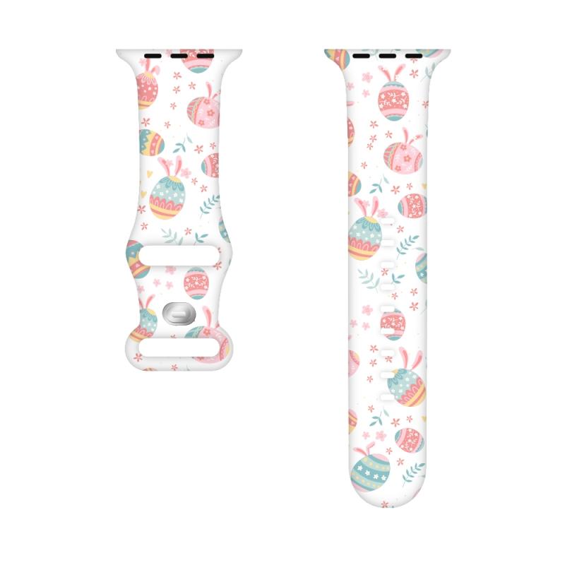 Για Apple Watch Series 9 45mm Λουρί Σιλικόνης με Αγκράφα Πεταλούδας με Εκτύπωση Πασχαλινή (Γαλάζιο Κουνελάκι)