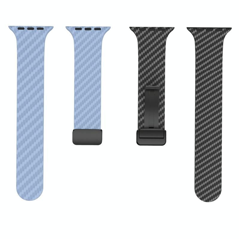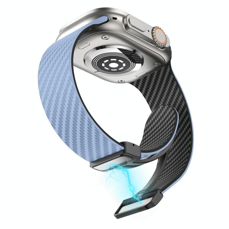 Για Apple Watch Series 9 45mm Λουρί ρολογιού από ανθρακονήματα με μαγνητική αγκράφα μαύρου χρώματος (Βασιλικό Μπλε Λευκό)