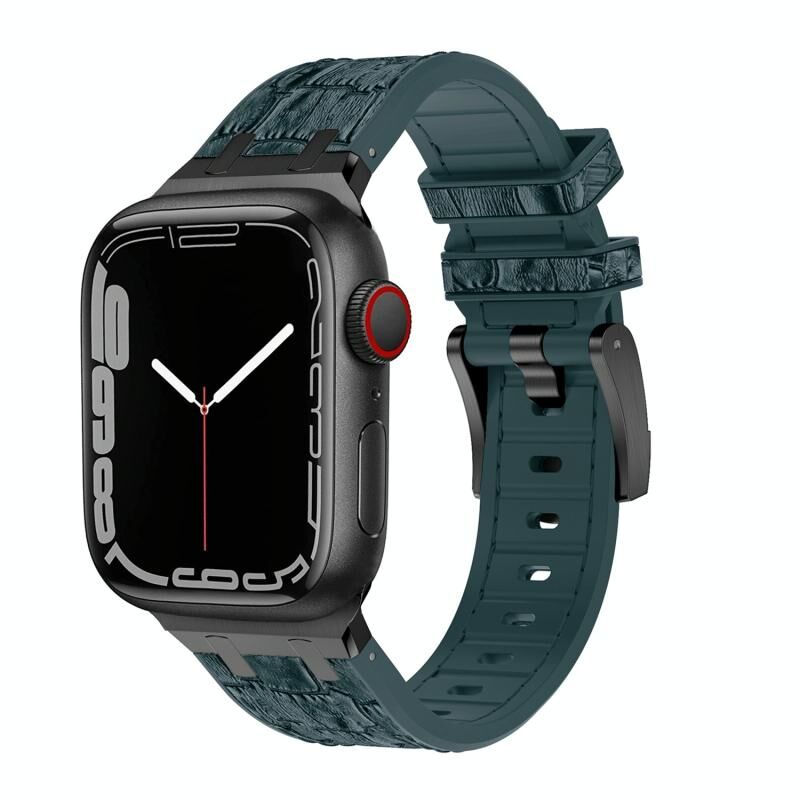 Για Apple Watch Series 9 45mm Λουρί Σιλικόνης Υγρού με Υφή Κροκόδειλου (Μαύρο Λευκό Μαύρο)