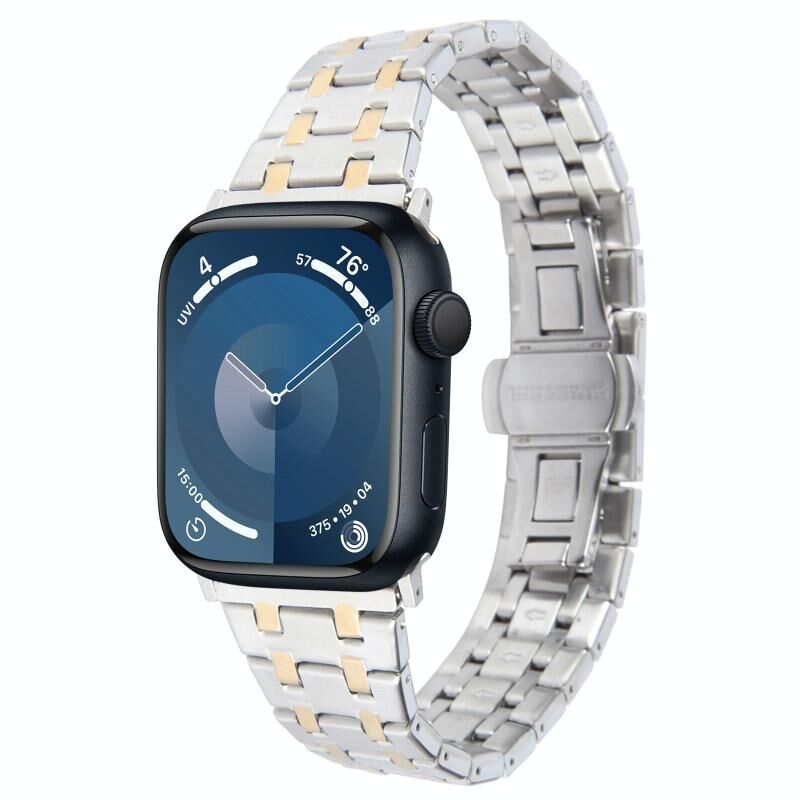 For Apple Watch Series 9 45mm Double T Stainless Steel Watch Band(Silver Gold)