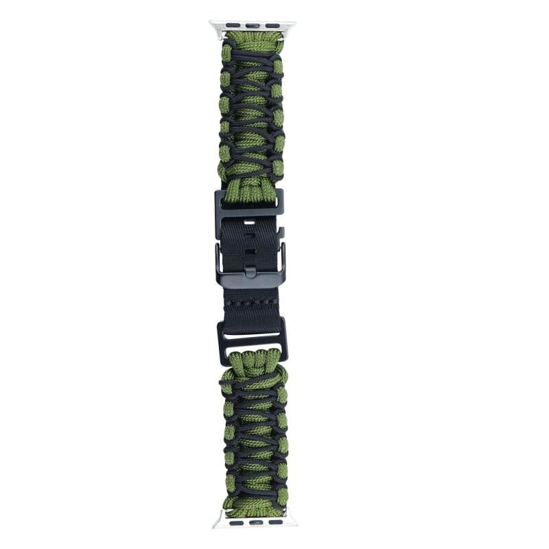 Για Apple Watch Series 9 45mm Διπλό Πλεγμένο Λουρί Παρακορδίου με Αγκράφα (Ναυτικό Πράσινο Στρατού)