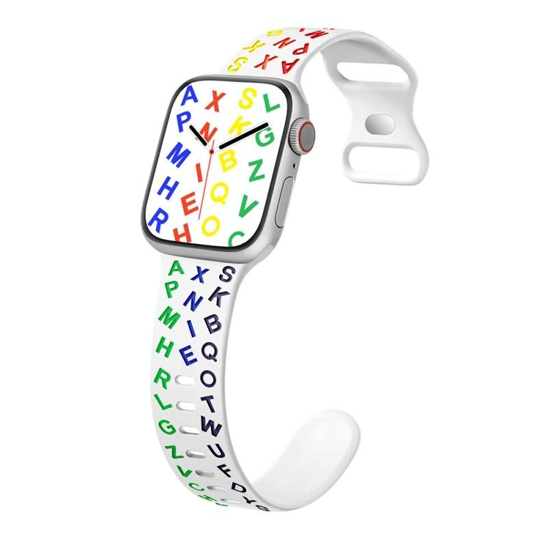 Για Apple Watch Series 9 45mm Λουράκι Σιλικόνης με Αγκράφα Πεταλούδας σε Αγγλικά Γράμματα (Λευκό Πολύχρωμο)