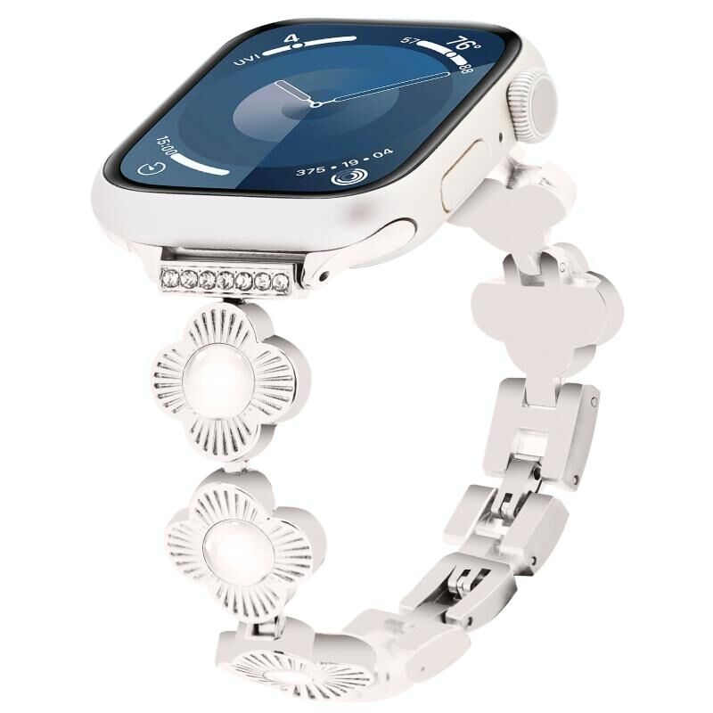 Για Apple Watch Series 9 45mm Λουράκι ρολογιού με αλυσίδα μετάλλου γρήγορης απελευθέρωσης Τριφύλλι (Starlight)