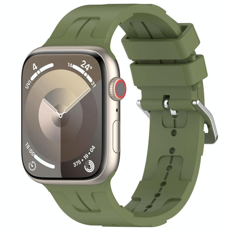 Για Apple Watch Series 9 45mm Λουράκι Σιλικόνης με Αγκράφα Σκάλας Υφής H (Χακί πράσινο)