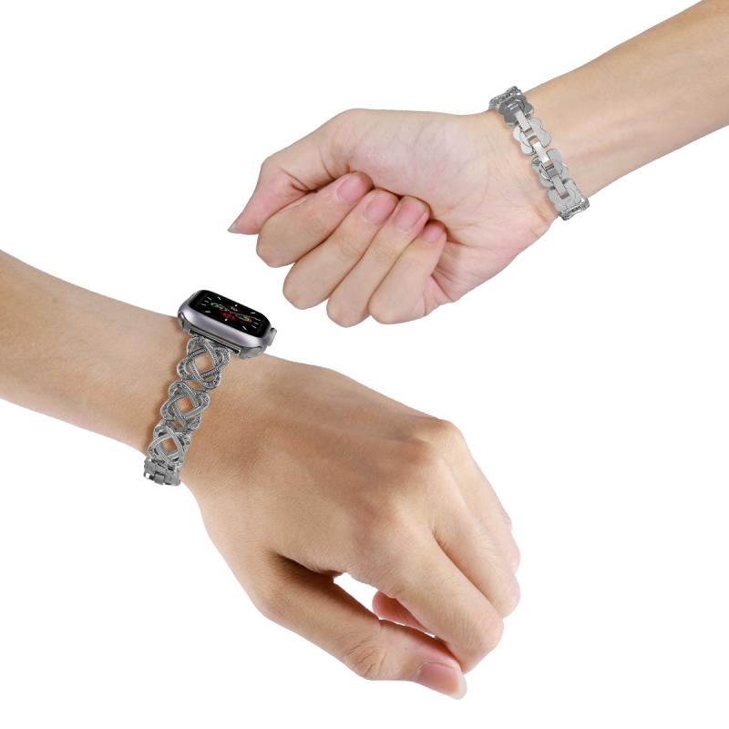 Για Apple Watch Series 9 45mm Λουράκι Μεταλλικό με Διαμάντια "Σταυρωμένες Καρδιές" (Ασημί)