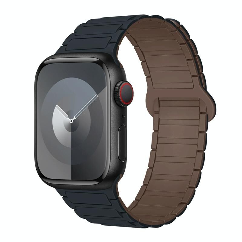Για Apple Watch Series 9 45mm Μαγνητικό Λουράκι Σιλικόνης σε Σχήμα I (Σοκολάτα της Μεσονύκτιου)