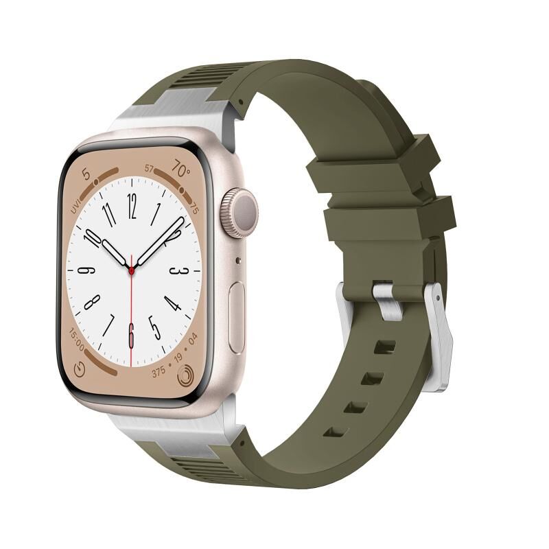 For Apple Watch Series 9 45mm Loners Liquid Silicone Watch Band(Silver Green)