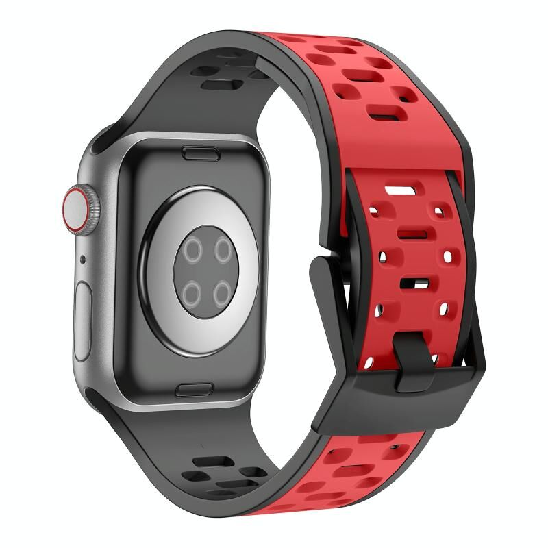 Για Apple Watch Series 9 45mm Λουρί Σιλικόνης Διχρωμίας Μετεωρίτης (Μαύρο Κόκκινο)