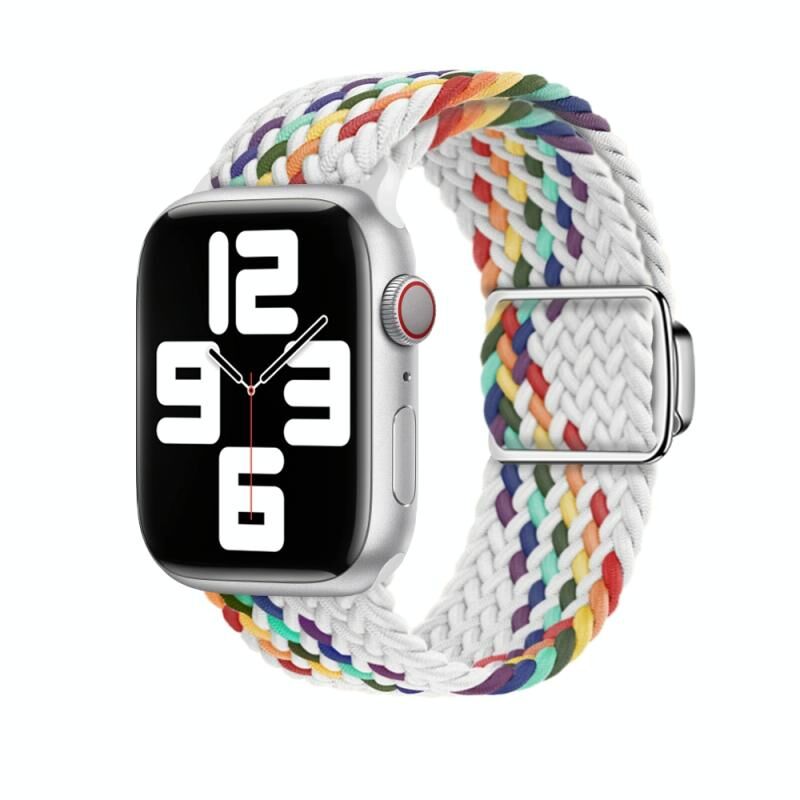 Για Apple Watch Series 9 45mm Λουρί Νάιλον με Μαγνητικό Κούμπωμα (Λευκό ουράνιο τόξο)