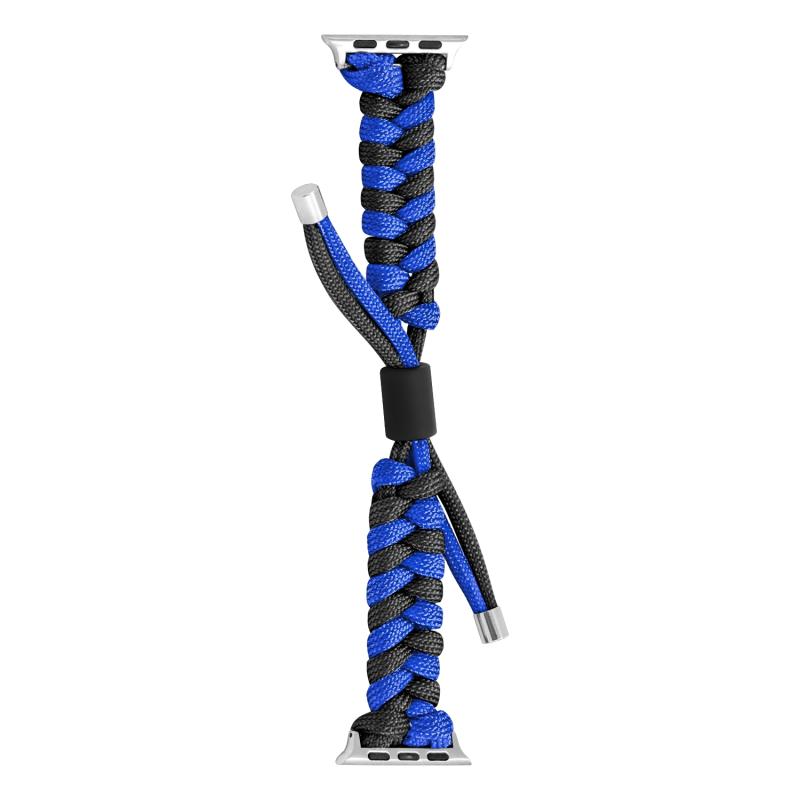 Για Apple Watch Series 9 45mm Λουρί Παρακορδόνι με πλέξη ουράς ψαριού και σιλικόνες (Μαύρο μπλε)