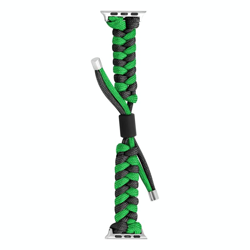 Για Apple Watch Series 9 45mm Λουρί Παρακορδόνι με πλέξη ουράς ψαριού και σιλικόνες (Μαύρο πράσινο)
