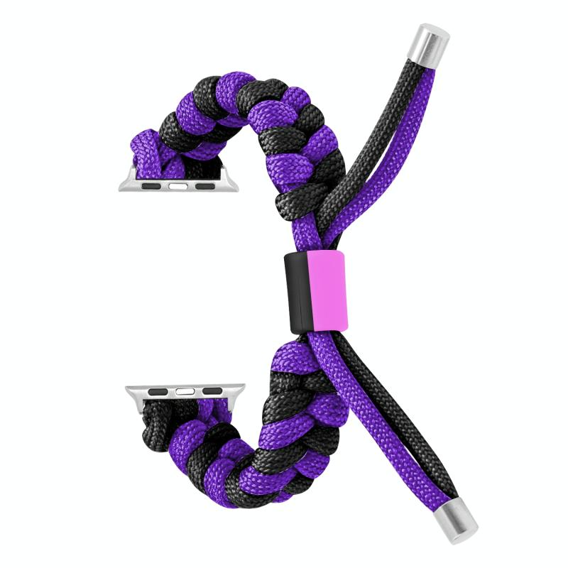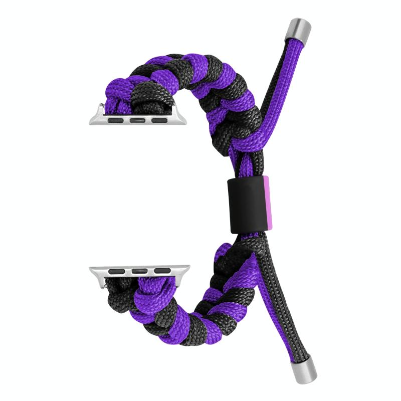 Για Apple Watch Series 9 45mm Λουρί Παρακορδόνι με πλέξη ουράς ψαριού και σιλικόνες (Μαύρο Μωβ)