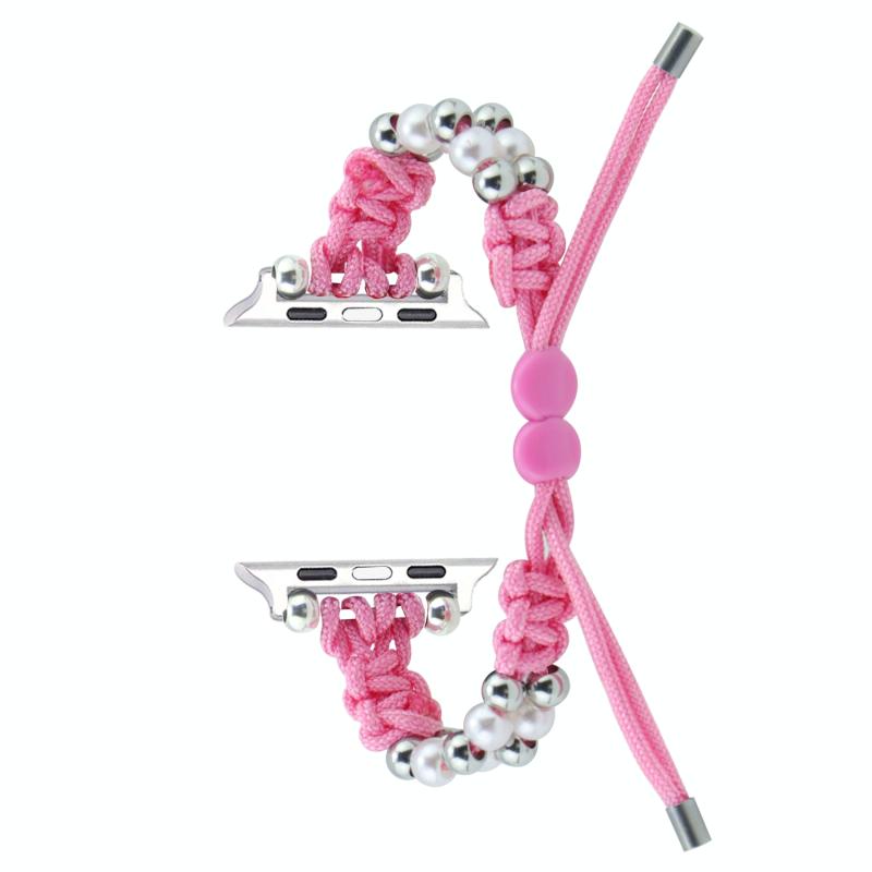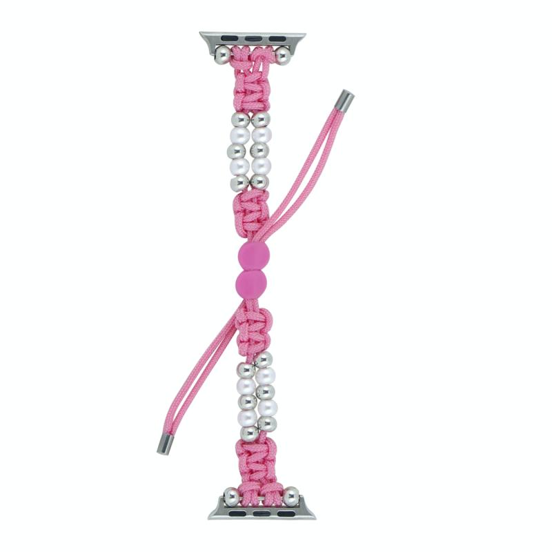 Για Apple Watch Series 9 45mm Λουρί Παρακορδίου με Χάντρες και Σχοινί, Πλεχτό (Λευκό)
