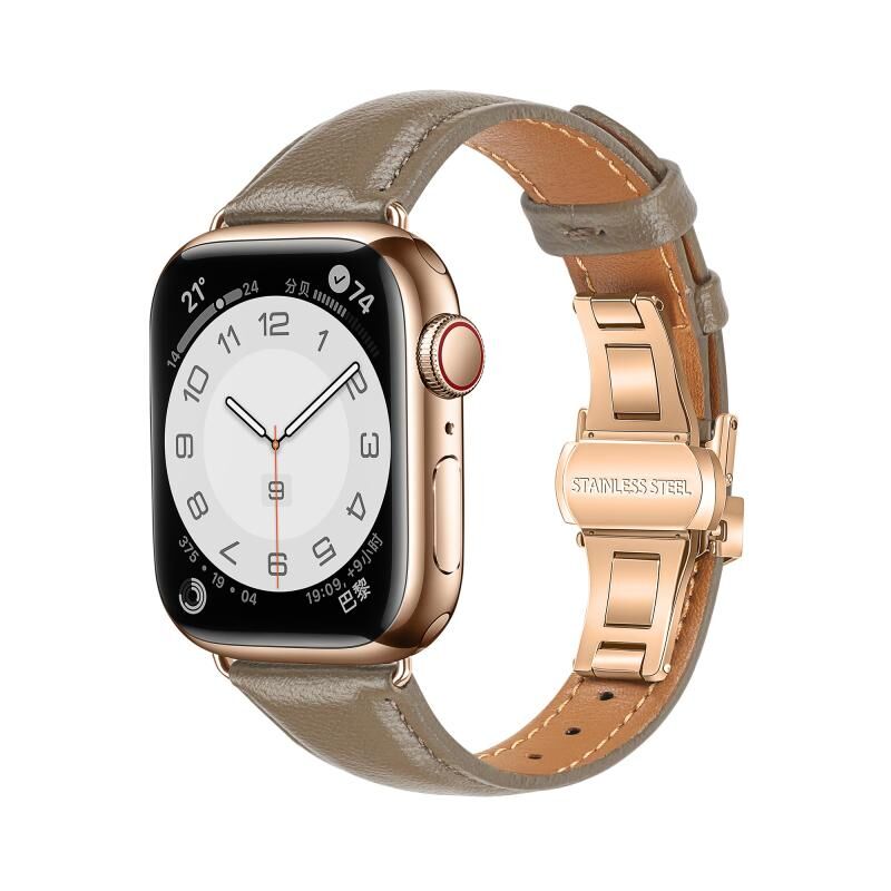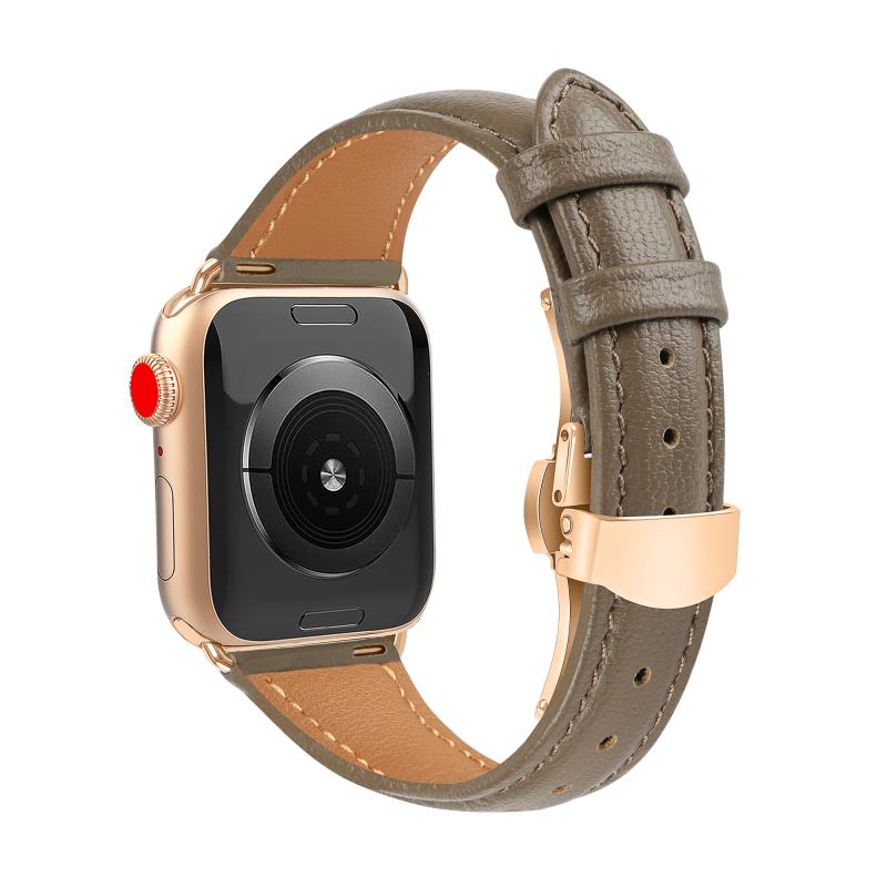 Για Apple Watch Series 9 45mm Λουρί Ρολογιού από Απλό Δέρμα με Αγκράφα Πεταλούδας (Σκούρο Καφέ+Ασημί)