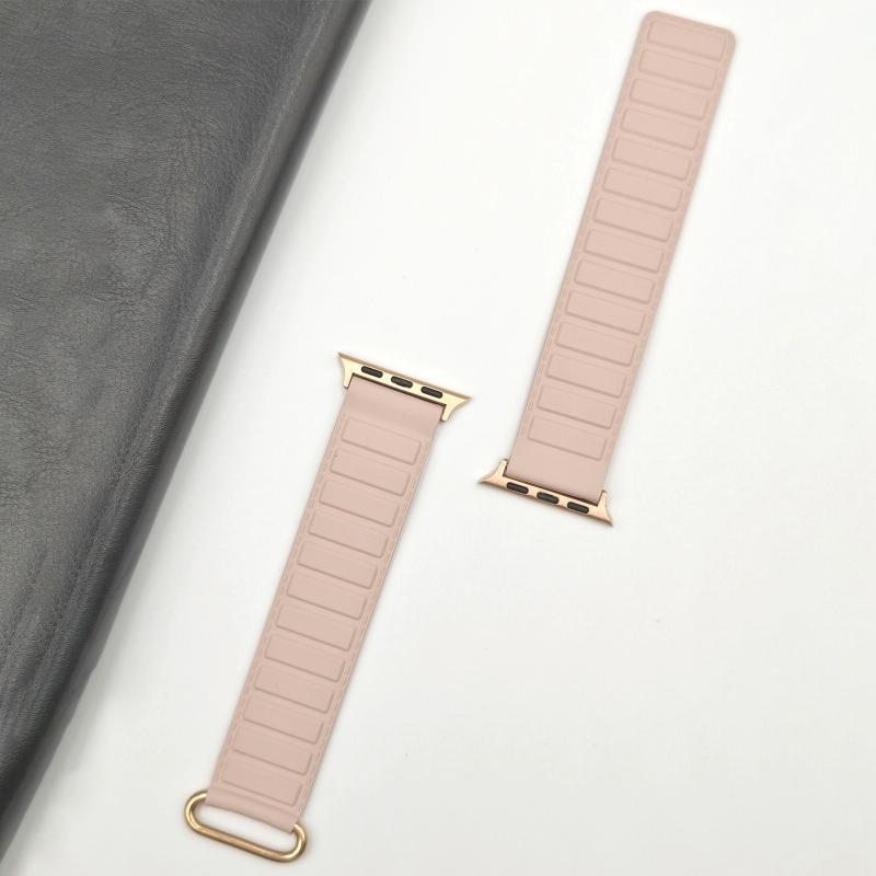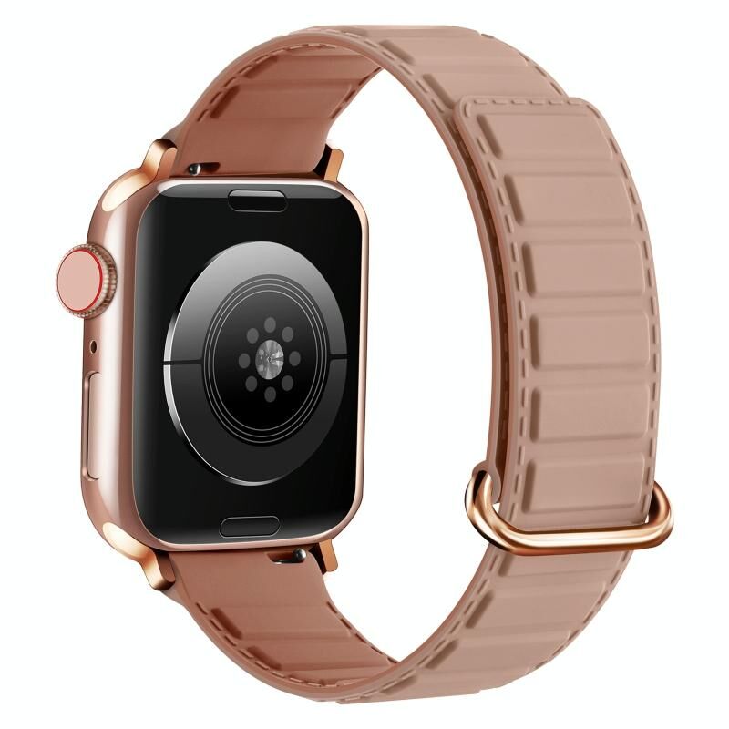 Για Apple Watch Series 9 45mm Λουρί Σιλικόνης με Μαγνητικό Κούμπωμα Αντίστροφης Αγκράφας (Ροζ Μπουκλέ Ρόζας)