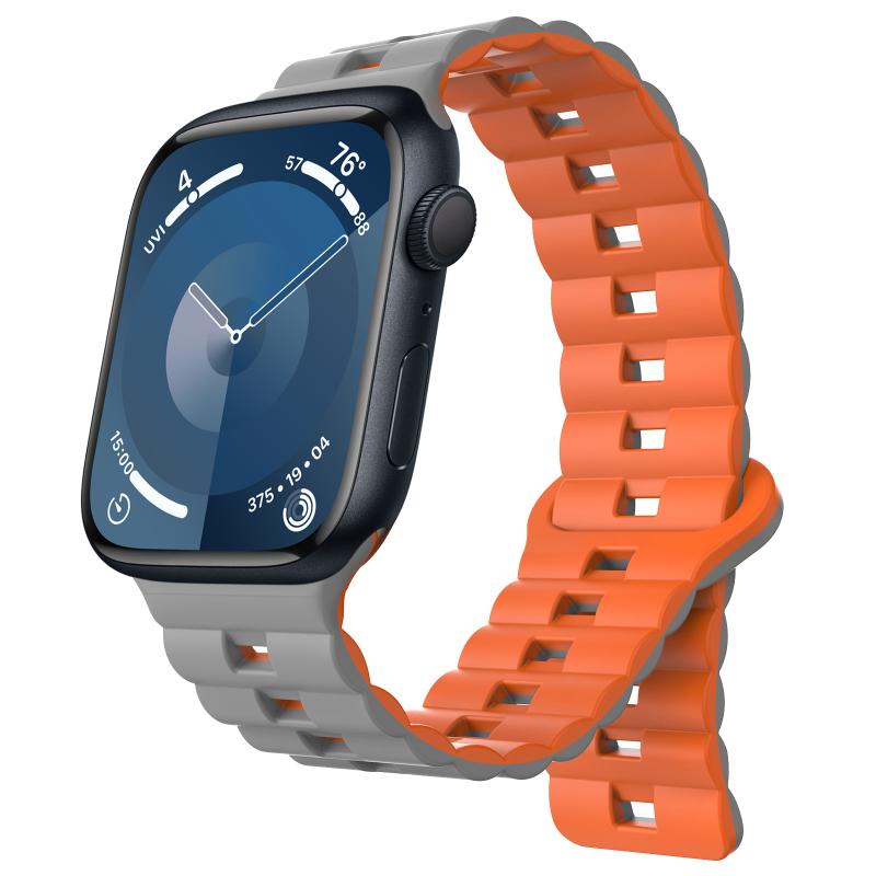 Για Apple Watch Series 9 45mm Λουρί Σιλικόνης με Μαγνητικό Κούμπωμα Αντίστροφης Πόρπης Δύο Χρωμάτων (Γκρι+Πορτοκαλί)