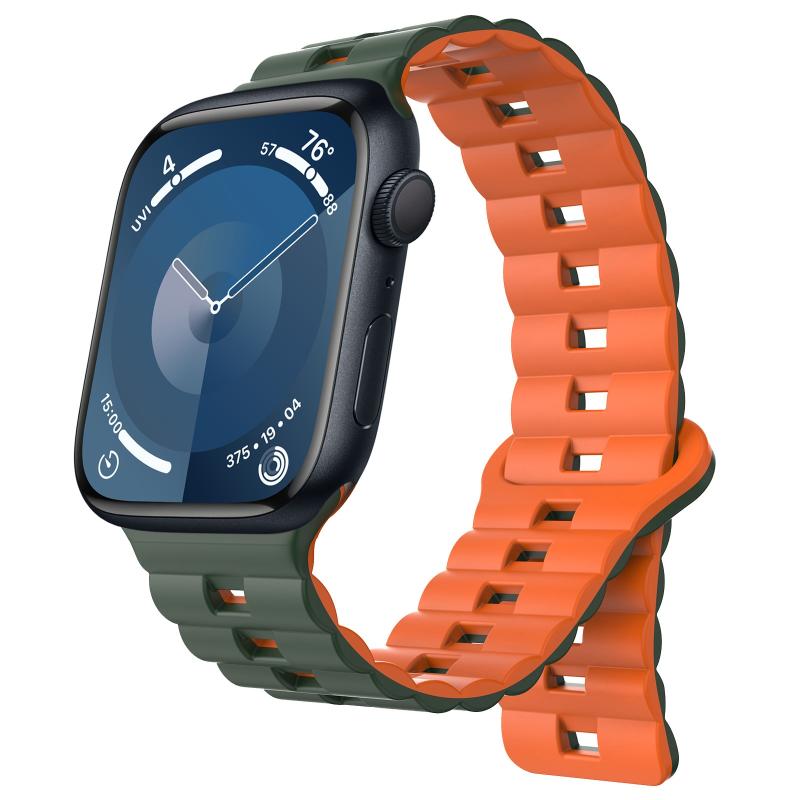 Για Apple Watch Series 9 45mm Λουρί Σιλικόνης με Μαγνητικό Κούμπωμα Αντίστροφης Πόρπης Δύο Χρωμάτων (Γκρι+Πορτοκαλί)