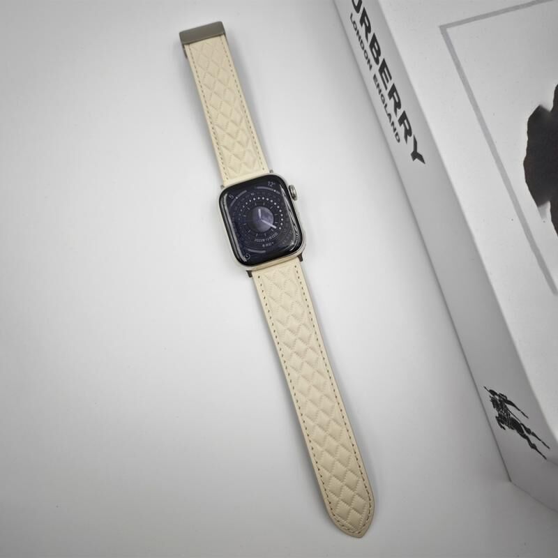 Για Apple Watch Series 9 45mm Λουρί Ρολογιού από Δέρμα με Μαγνητική Αγκράφα Δίπλωσης σε Σχήμα Ρόμβου (Κρεμ λευκό)