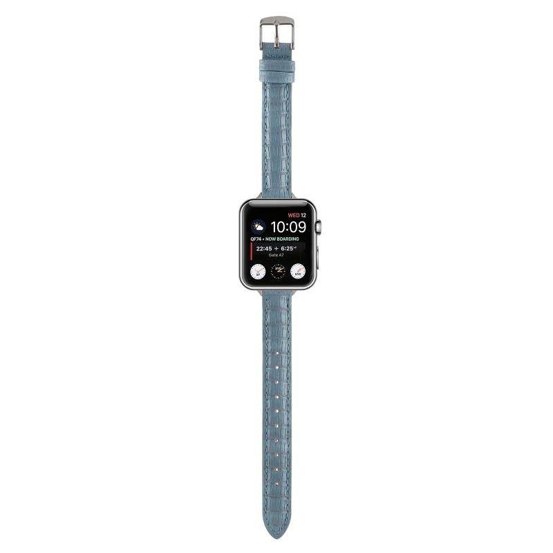 Για Apple Watch Series 9 45mm Λεπτό Δερμάτινο Λουρί Κροκόδειλου (Ανοιχτό μπλε)