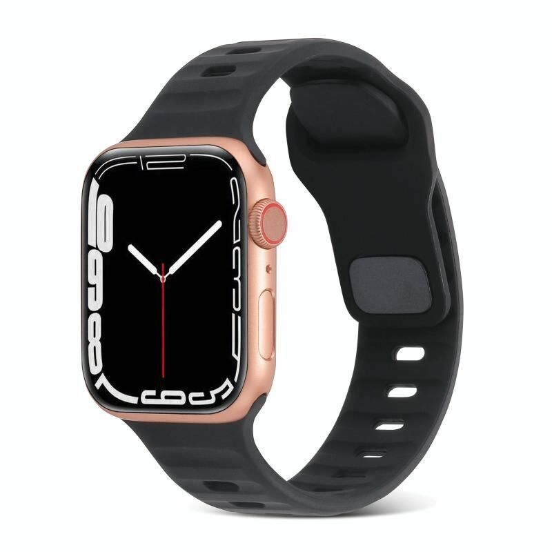 Για Apple Watch Series 9 45mm Λουρί Σιλικόνης με Αγκράφα Τετράγωνη Ρίγες (Μαύρο)