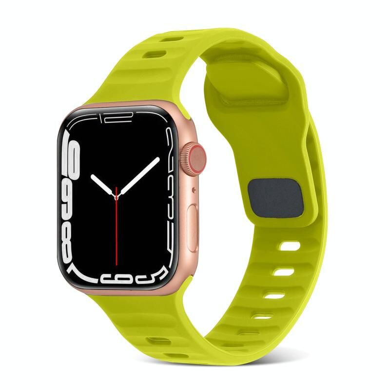 Για Apple Watch Series 9 45mm Λουρί Σιλικόνης με Αγκράφα Τετράγωνη Ρίγες (Φωσφορίζον Πράσινο)
