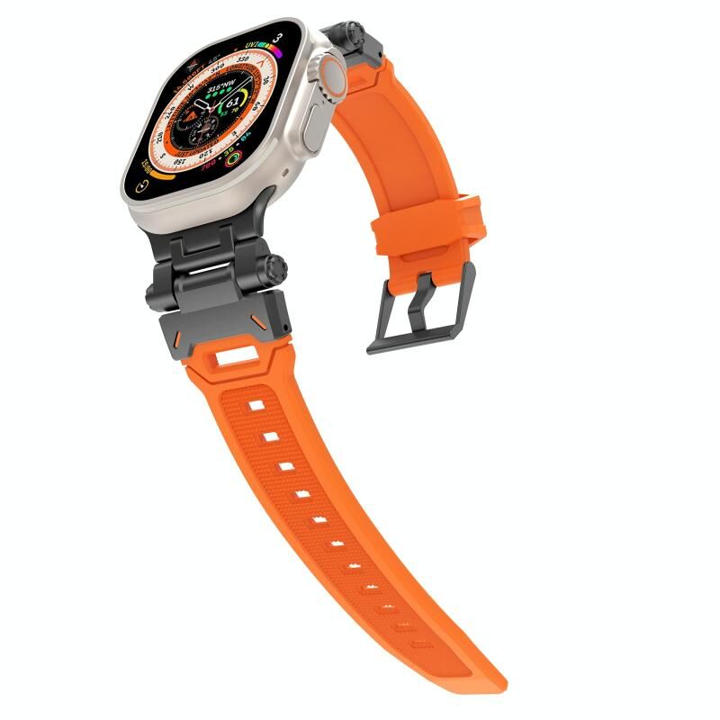 Για Apple Watch Series 9 45mm Συνδετήρας από Ανοξείδωτο Ατσάλι Λουράκι Ρολογιού TPU (Μαύρο Πορτοκαλί)