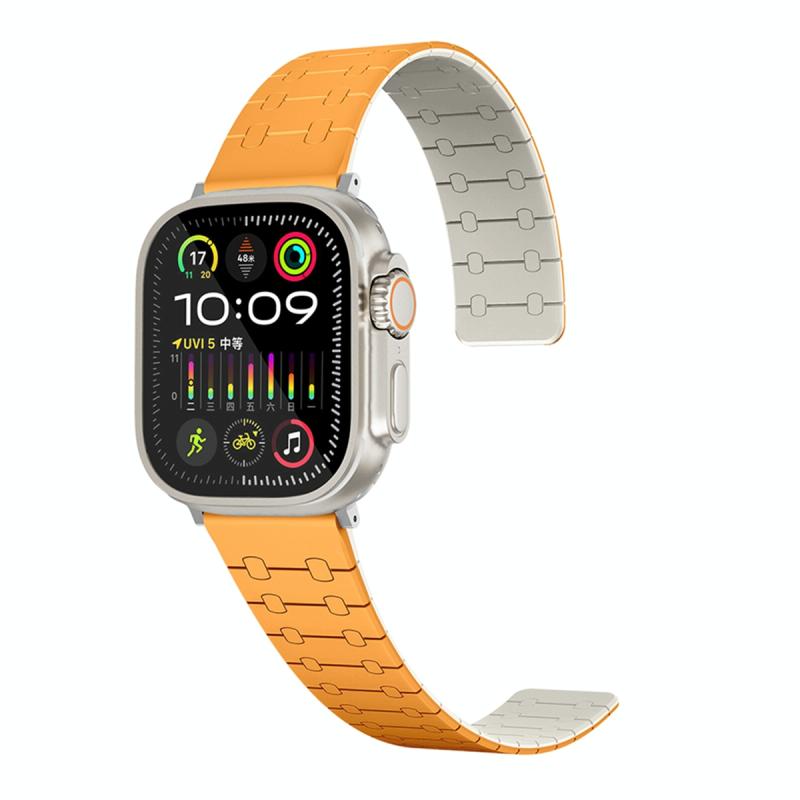 For Apple Watch Series 9 45mm Two Color Loop Magnetic Silicone Watch Band(Orange+Starlight)