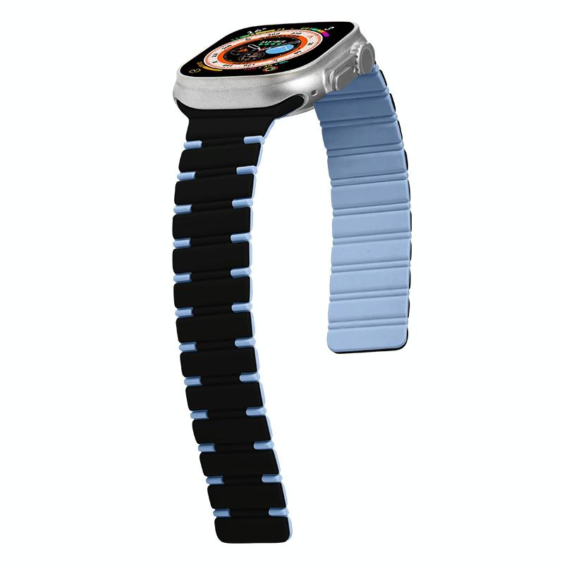 Για Apple Watch Series 9 45mm Διχρωματικό Μαγνητικό Λουράκι Σιλικόνης (Obsidian Lime)