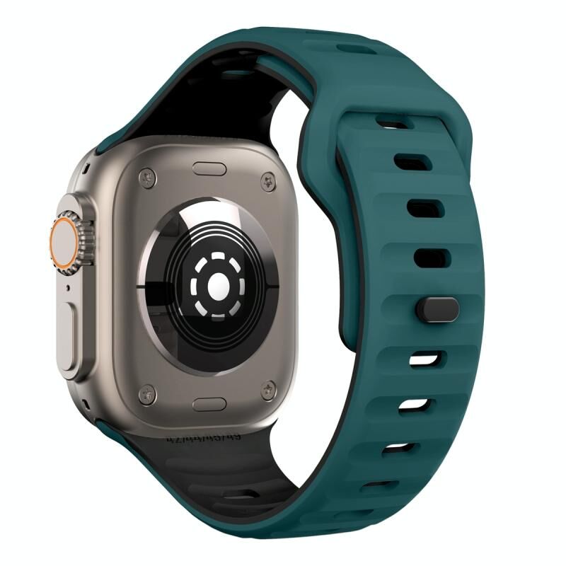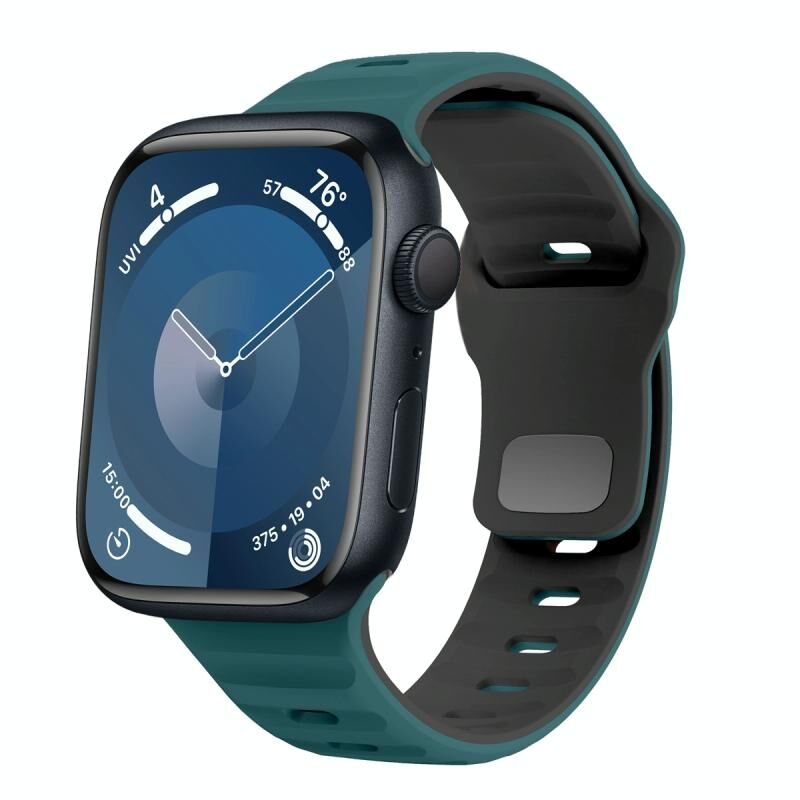 Για Apple Watch Series 9 45mm Λουρί Σιλικόνης με Αγκράφα Αντίστροφης Κλειδαριάς Υφής Κύματος (Πράσινο Μαύρο)
