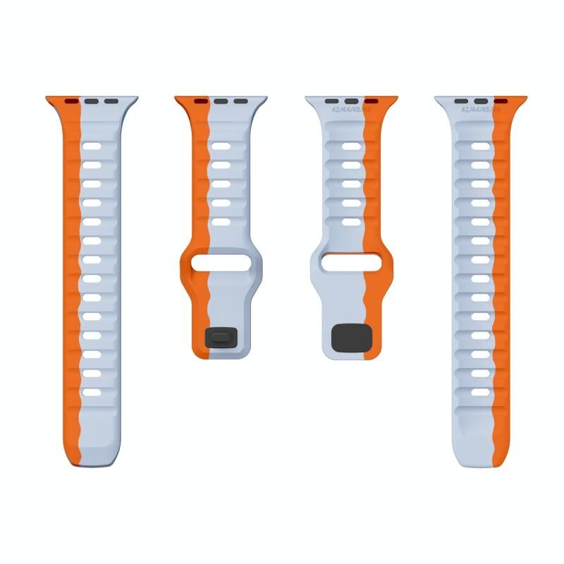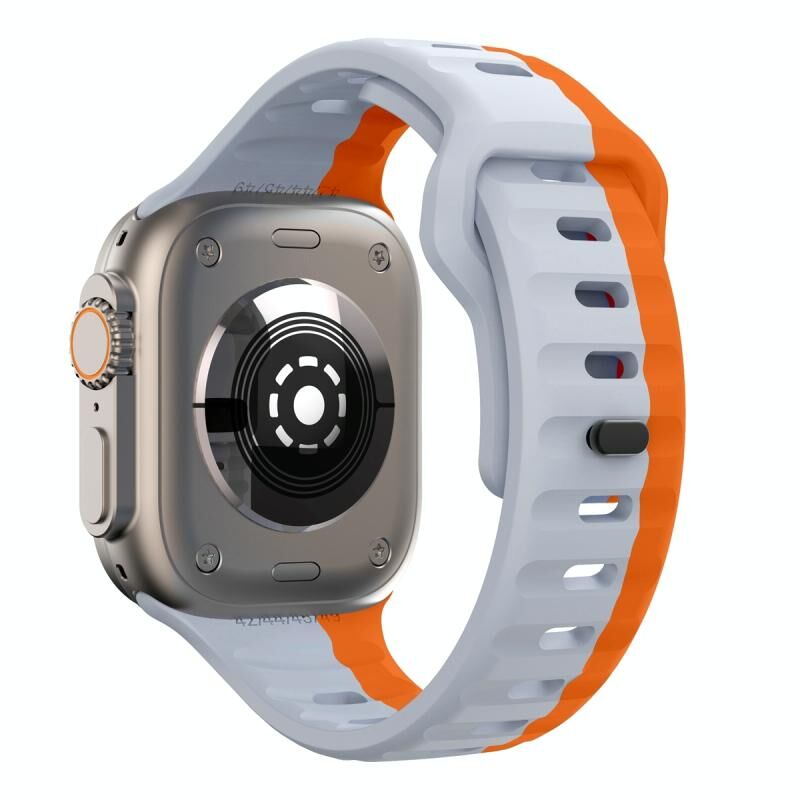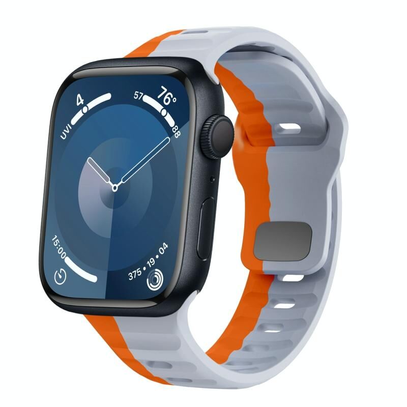 Για Apple Watch Series 9 45mm Λουρί Σιλικόνης με Αγκράφα Αντίστροφης Κλειδαριάς Υφής Κύματος (Γκρι Πορτοκαλί)