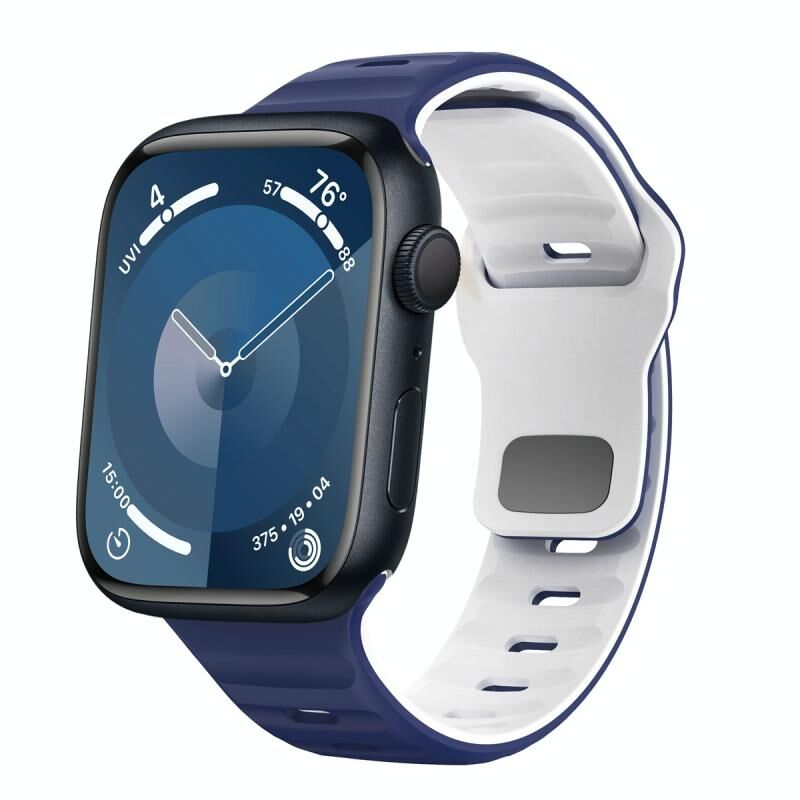 For Apple Watch Series 9 45mm Wave Texture Reverse Buckle Silicone Watch Band(Midnight Blue White)