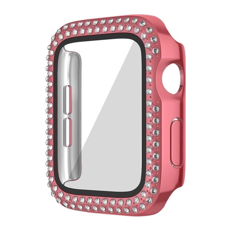 Θήκη ρολογιού PC με διαμάντια διπλής σειράς και μεμβράνη για Apple Watch Series 9 / 8 / 7 41mm (Χρυσό ροζ)